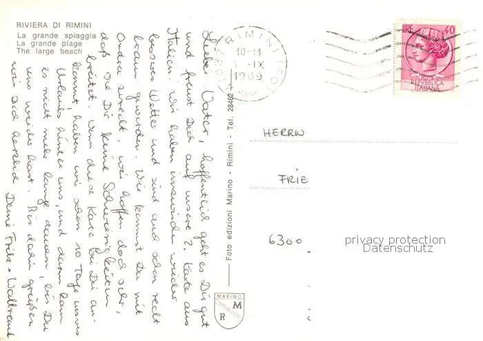 Rimini_IT Grosser Strand postalisch gelaufen 1969 Erhaltung siehe scans [LiesaD40] LiesID40