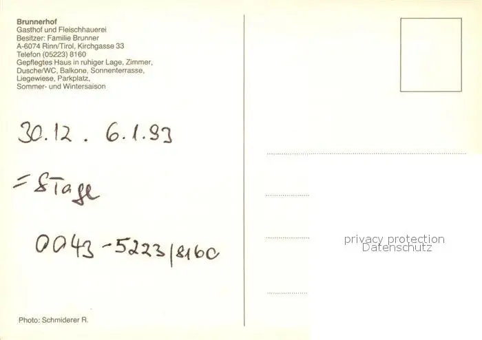 Rinn Gasthof Brunnerhof Rinn postalisch nicht gelaufen nach 1965 Erhaltung siehe scans [PaolaD17] PaolPID1