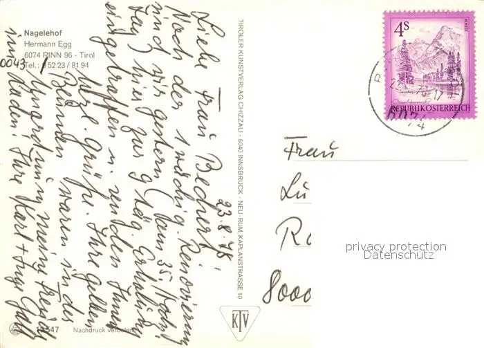 Rinn Nagelehof Rinn postalisch gelaufen 1978 Erhaltung siehe scans [NatalD47] NataID47
