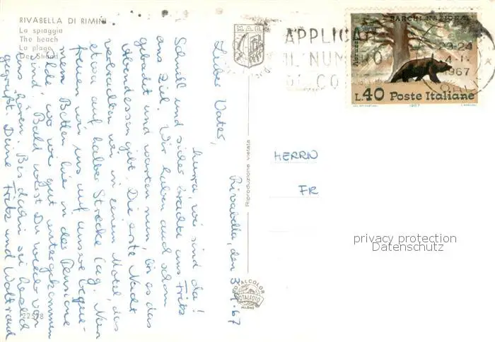 Rivabella_Rimini_IT Strand-Partie postalisch gelaufen 1967 Erhaltung siehe scans [LiesaD40] LiesID40