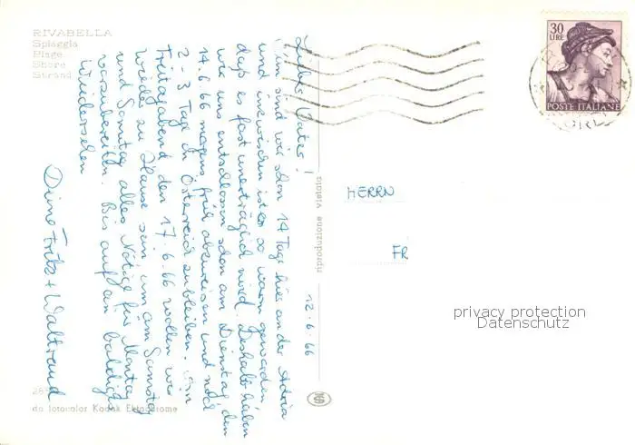 Rivabella_Rimini_IT Strand-Partie postalisch gelaufen 1966 Erhaltung siehe scans [LiesaD40] LiesID40