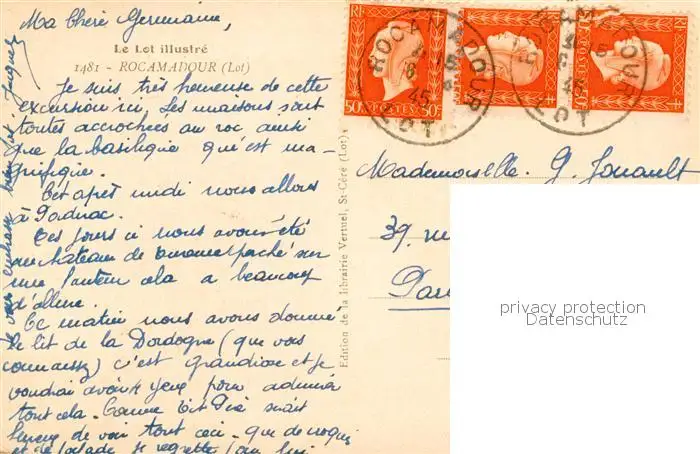 Rocamadour Vue aerienne Rocamadour postalisch gelaufen 1945 Erhaltung siehe scans [WerneD78] WernPID7