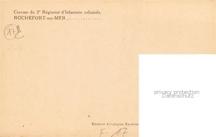 Rochefort_sur_Mer Caserne du 3e Régiment d Infanterie coloniale Rochefort_sur_Mer postalisch nicht gelaufen bis 1920 Erhaltung siehe scans [FriedD77] Frierer