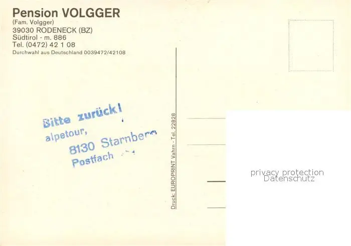 Rodeneck_Italien Pension Volgger Rodeneck Italien postalisch nicht gelaufen nach 1965 Erhaltung siehe scans [FriedD77] Frierer
