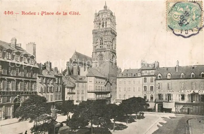 Rodez Place de la Cité Rodez postalisch gelaufen 1906 Erhaltung siehe scans [FriedD77] Frierer