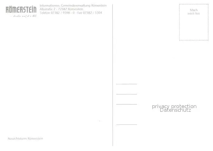 Roemerstein Turm Roemerstein postalisch nicht gelaufen nach 1965 Erhaltung siehe scans [KathaD81] Kathoren