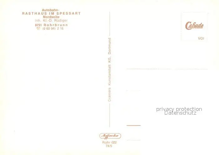 Rohrbrunn Autobahn-Rasthaus Rohrbrunn postalisch nicht gelaufen nach 1965 Erhaltung siehe scans [NatalD47] NataID47