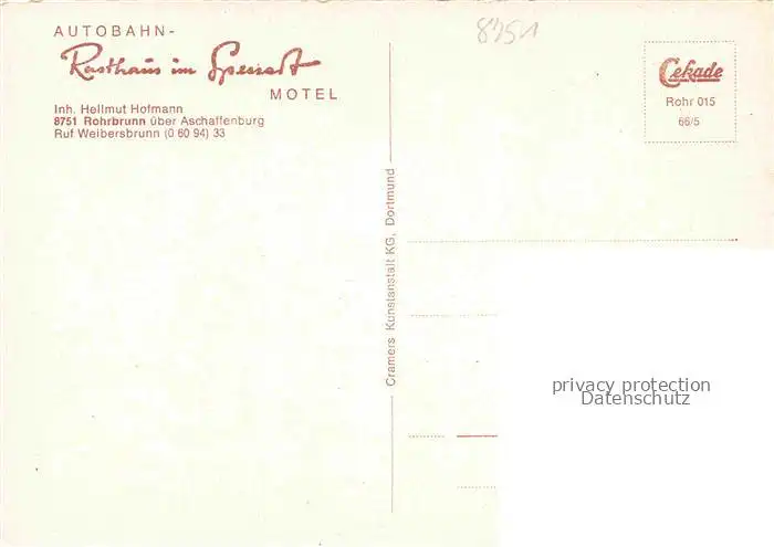 Rohrbrunn Autobahn-Rasthaus im Spessart postalisch nicht gelaufen Erhaltung siehe scans [FriedD77]