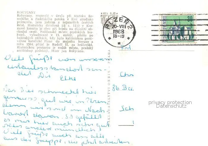 Rokycany Teilansichten Rathaus Landschaftspanorama Rokycany postalisch gelaufen 1968 Erhaltung siehe scans [FriedD77] Frierer