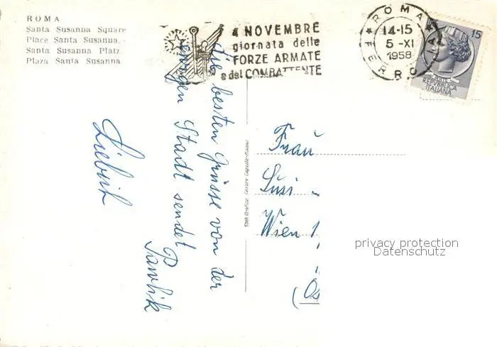 Roma_Rom Santa Susanna Square Roma_Rom postalisch gelaufen 1958 Erhaltung siehe scans [WerneD78] WernPID7