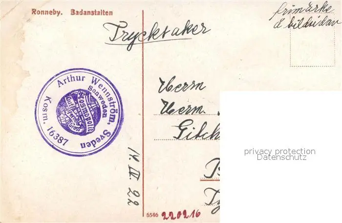 Ronneby Badanstalten Ronneby postalisch gelaufen 1922 Erhaltung siehe scans [WerneD78] WernPID7
