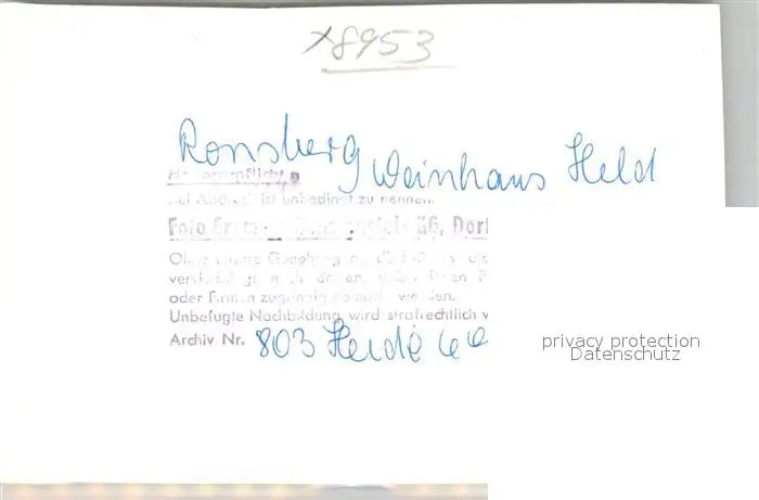 Ronsberg Weinhaus Held Ronsberg postalisch nicht gelaufen 1969 Verlagsrohabzug (keine Postkartenrueckseite) Erhaltung siehe scans [WerneD78] Verlagsrohabzug (keine Postkartenrueckseite) WernPID7