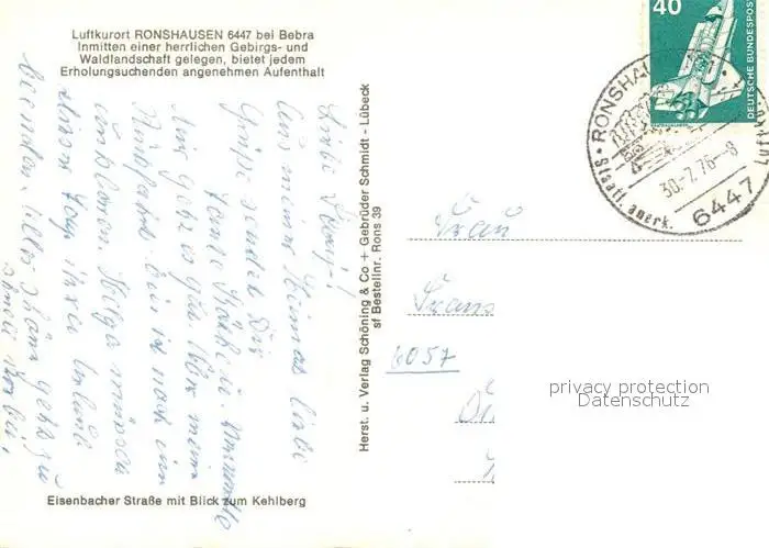 Ronshausen Kategorie Alte Ansichtskarten Postkarten bx54810 Ronshausen Ronshausen postalisch gelaufen 1976 Erhaltung siehe scans [NatalD47]