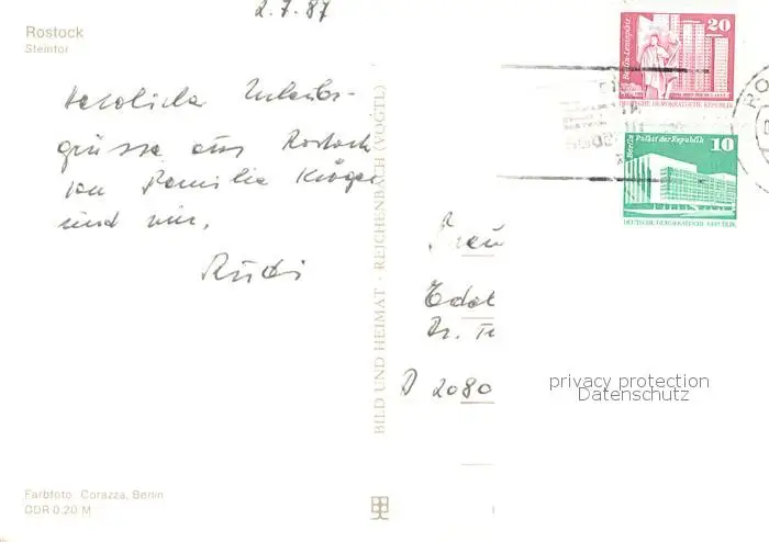 Rostock Steintor Strassenbahn postalisch gelaufen 1987 Erhaltung siehe scans [FriedD77] Frierer