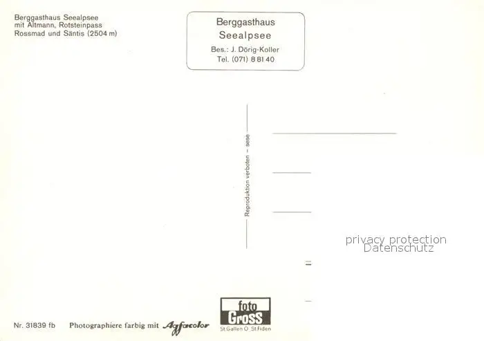 Rotsteinpass Berggasthaus Seealpsee Altmann Rossmad Saentis Rotsteinpass postalisch nicht gelaufen nach 1965 Erhaltung siehe scans [KathaD81] Kathoren