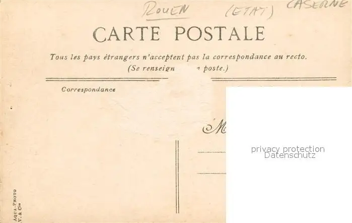 Rouen Caserne Rouen postalisch nicht gelaufen bis 1920 Erhaltung siehe scans [LiesaD40] LiesID40