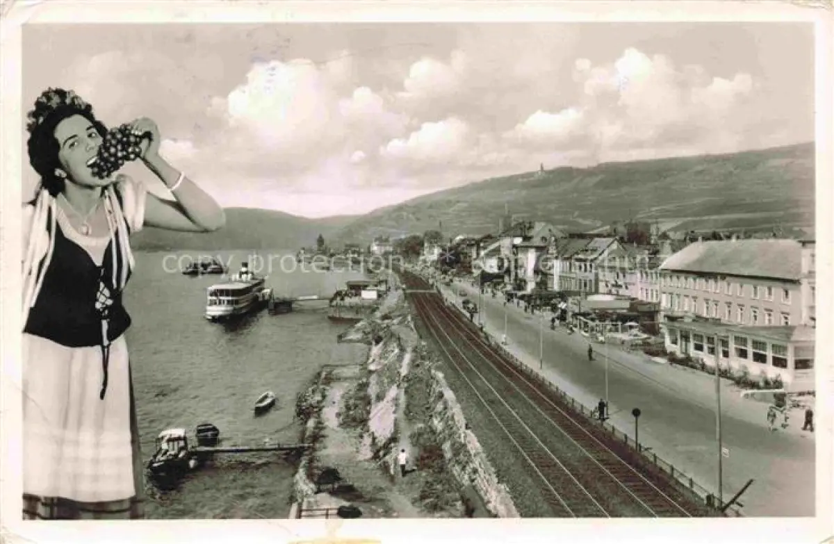 alte Postkarte RueDESHEIM am Rhein Hessen Rheinpromenade postalisch gelaufen Erhaltung siehe scans [WerneD78]