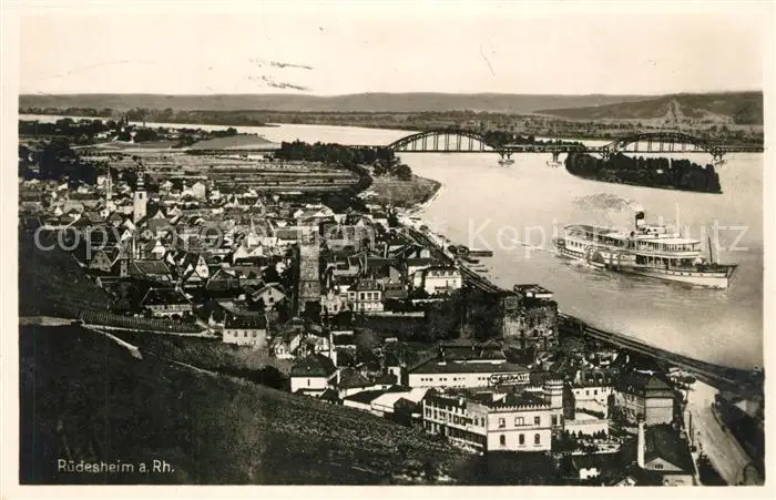 Ruedesheim_Rhein Panorama Ruedesheim Rhein postalisch gelaufen 1921-1965 Erhaltung siehe scans [KathaD81] Kathoren