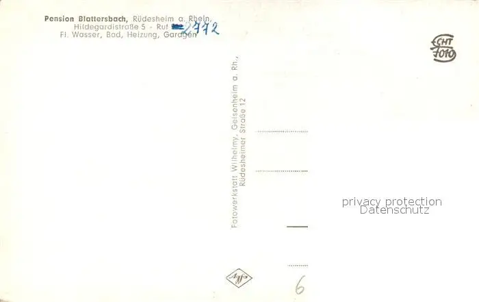 Ruedesheim_Rhein Pension Blattersbach Ruedesheim Rhein postalisch nicht gelaufen nach 1965 Erhaltung siehe scans [KathaD81] Kathoren