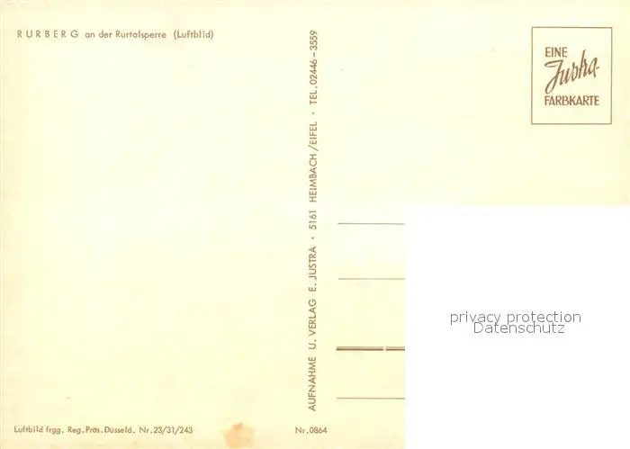 Rurberg Fliegeraufnahme mit Rurtalsperre Rurberg postalisch nicht gelaufen nach 1965 Erhaltung siehe scans [WerneD78] WernPID7