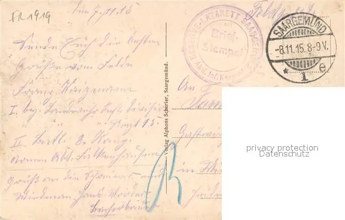 Saargemuend Fabrik Kasino Saargemuend postalisch gelaufen 1915 Feldpost - Stempel Erhaltung siehe scans [FriedD77] Feldpost - Stempel Frierer