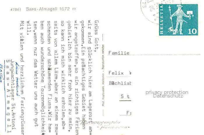 Saas-Almagell_VS Panorama mit Kirche postalisch gelaufen 1963 Erhaltung siehe scans [FriedD77] Frierer