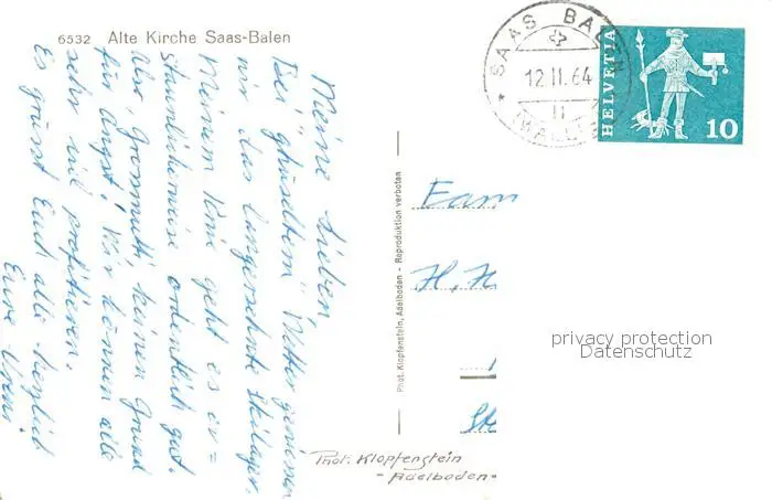 Saas-Balen_VS Alte Kirche postalisch gelaufen 1964 Erhaltung siehe scans [FriedD77] Frierer