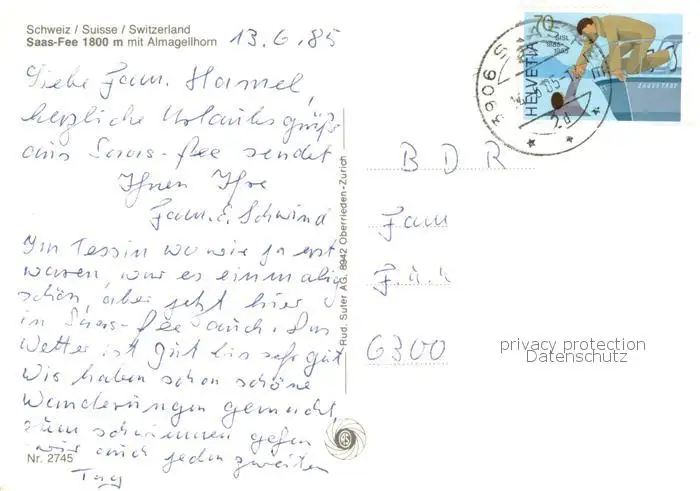 Saas-Fee Totalansicht Saas-Fee postalisch gelaufen 1985 Erhaltung siehe scans [LiesaD40] LiesID40