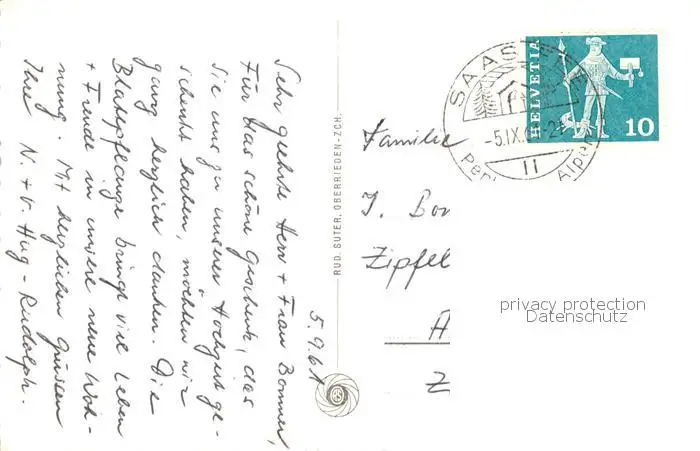 Saas-Fee_VS mit Allalin und Alphubel postalisch gelaufen 1961 Erhaltung siehe scans [FriedD77] Frierer