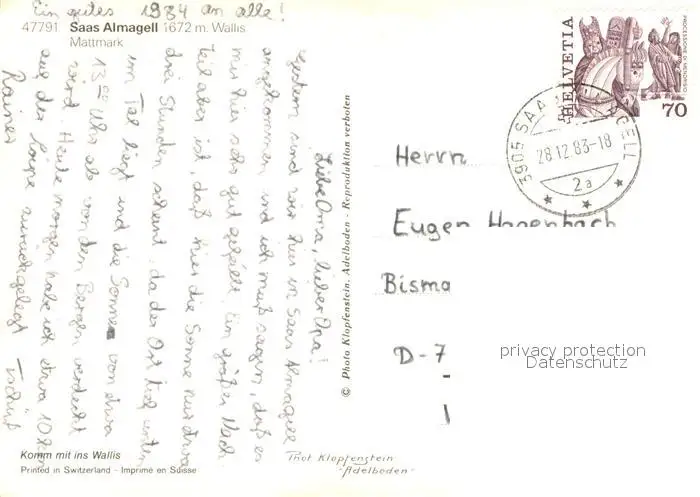 Saas_Almagell Mattmark Saas Almagell postalisch gelaufen 1983 Erhaltung siehe scans [LiesaD40] LiesID40