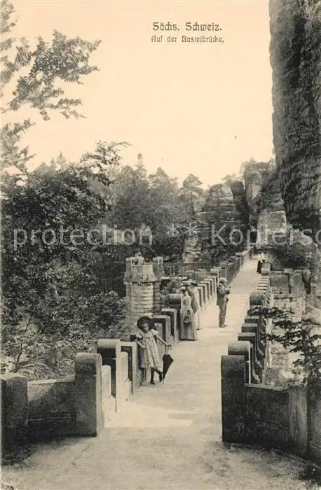 AK / Ansichtskarte Saechsische_Schweiz Auf der Basteibruecke Saechsische Schweiz