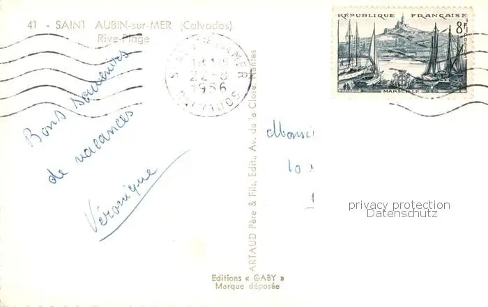 Saint-Aubin-sur-Mer_Calvados Rive Plage Saint-Aubin-sur-Mer postalisch gelaufen 1956 Erhaltung siehe scans [FriedD77] Frierer