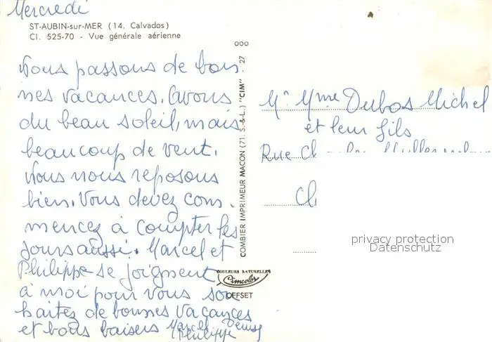 Saint-Aubin-sur-Mer_Calvados Vue generale aerienne Saint-Aubin-sur-Mer postalisch nicht gelaufen nach 1965 Erhaltung siehe scans [WerneD78] WernPID7