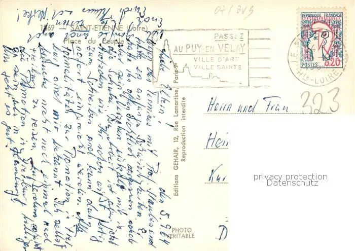 Saint-Etienne_Loire Place du Peuple Saint-Etienne Loire postalisch gelaufen 1964 Erhaltung siehe scans [FriedD77] Frierer