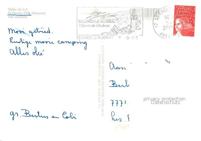 Saint-Geniez-d_Olt Vallée du Lot vue aérienne Saint-Geniez-d Olt postalisch gelaufen 2003 Erhaltung siehe scans [FriedD77] Frierer