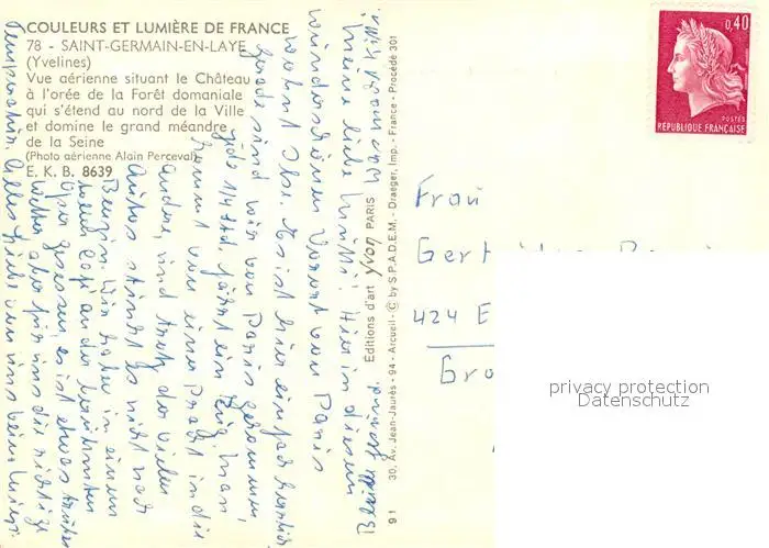 Saint-Germain-en-Laye Vue aerienne situant le Chateau Saint-Germain-en-Laye postalisch nicht gelaufen nach 1965 Erhaltung siehe scans [WerneD78] WernPID7