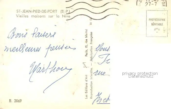 Saint-Jean-Pied-de-Port Maisons sur la Nive Saint-Jean-Pied-de-Port postalisch gelaufen 1921-1965 Erhaltung siehe scans [PaolaD17] PaolPID1