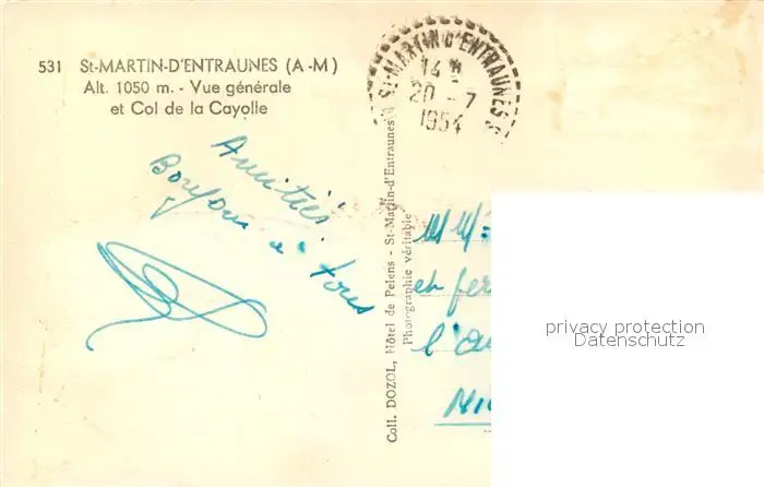 Saint-Martin-d_Entraunes Vue générale et Col de la Cayolle Saint-Martin-d Entraunes postalisch gelaufen 1954 Erhaltung siehe scans [FriedD77] Frierer