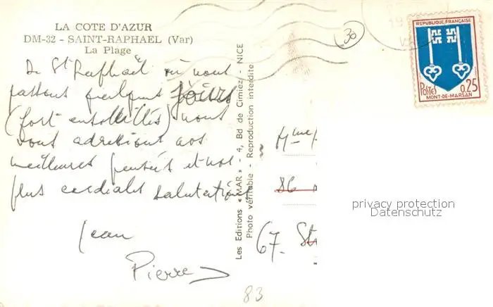 Saint-Raphael_Var La Plage Cote d'Azur Saint-Raphael Var postalisch gelaufen 1921-1965 Erhaltung siehe scans [FriedD77] Frierer