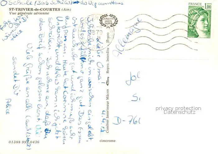 Saint-Trivier-de-Courtes Vue generale aerienne Saint-Trivier-de-Courtes postalisch gelaufen 1979 Erhaltung siehe scans [WerneD78] WernPID7