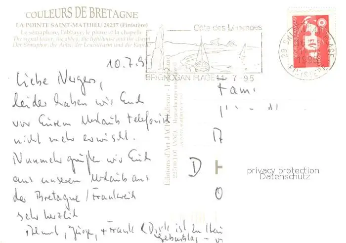 Saint_Mathieu_Pointe_La_Plougonvelin Der Semaphor - Die Abtei - Leuchtturm u. Kapelle postalisch gelaufen 1995 Erhaltung siehe scans [LiesaD40] LiesID40