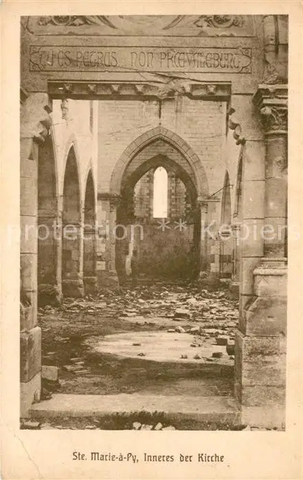 AK / Ansichtskarte Sainte_Marie_a_Py Im WK1 beschaedigte Kirche Inneres Sainte_Marie_a_Py