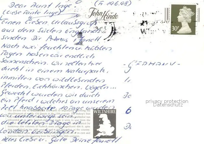 Salisbury Wiltshire Salisbury postalisch gelaufen nach 1965 Erhaltung siehe scans [PaolaD17] PaolPID1