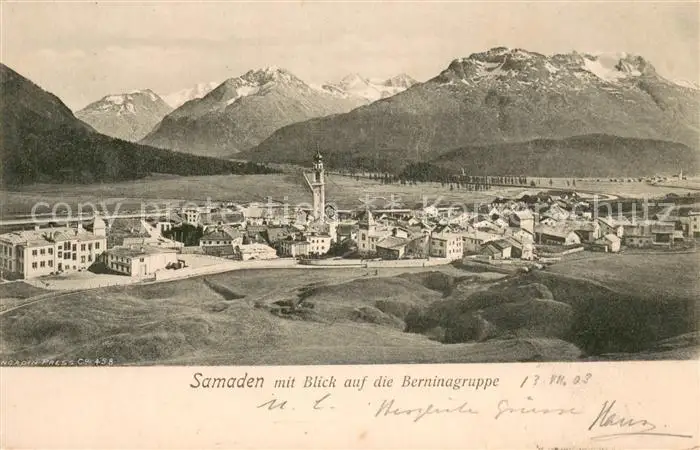 Samaden Panorama mit Berninagruppe Samaden postalisch gelaufen 1903 Erhaltung siehe scans [WerneD78] WernPID7