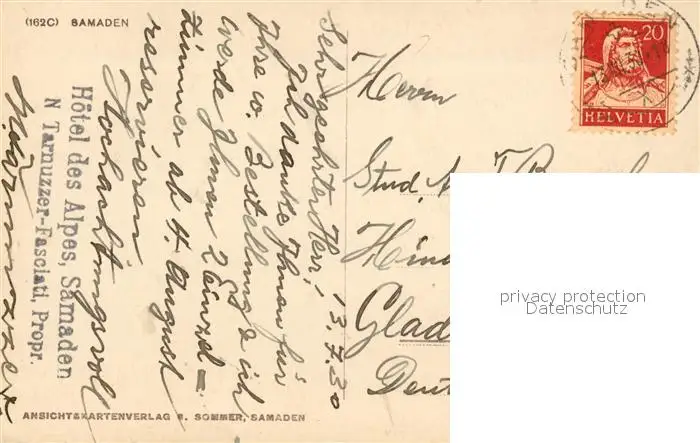 Samaden Partie am Fluss Samaden postalisch gelaufen 1930 Erhaltung siehe scans [FriedD77] Frierer