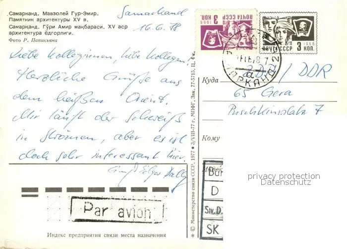 Samarkand Mausoleum Gur-Emir Samarkand postalisch gelaufen nach 1965 Erhaltung siehe scans [Darjalle] Darjolle