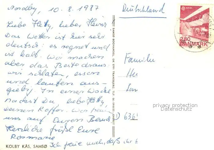 Samso Kolby Kas Samso postalisch gelaufen 1987 Erhaltung siehe scans [NatalD47] NataID47