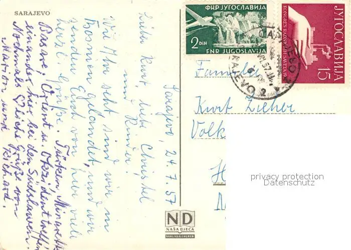 Sarajevo Sarajevo postalisch gelaufen 1957 Erhaltung siehe scans [LiesaD40] LiesID40