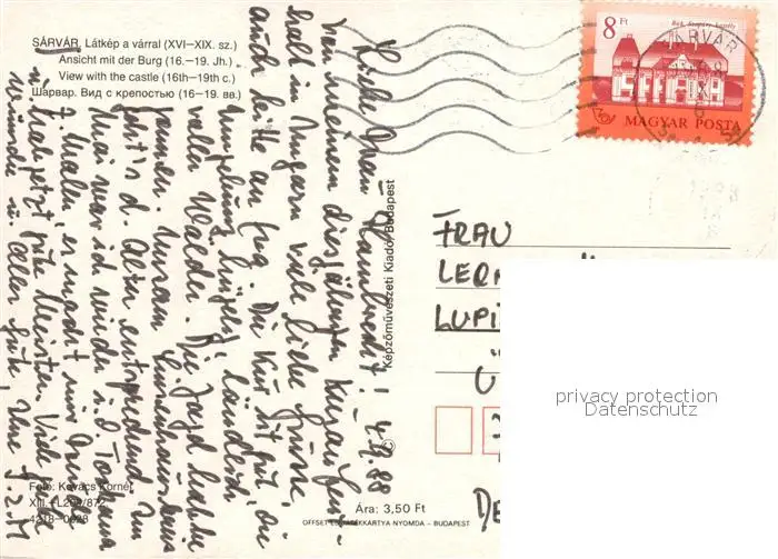Sarvar Ansicht mit Burg Sarvar postalisch gelaufen nach 1965 Erhaltung siehe scans [WerneD78] WernPID7