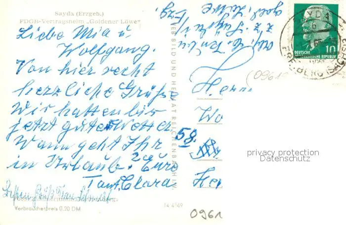 Sayda FDGB Vertragsheim Goldener Loewe Sayda postalisch gelaufen 1965 Erhaltung siehe scans [KathaD81] Kathoren